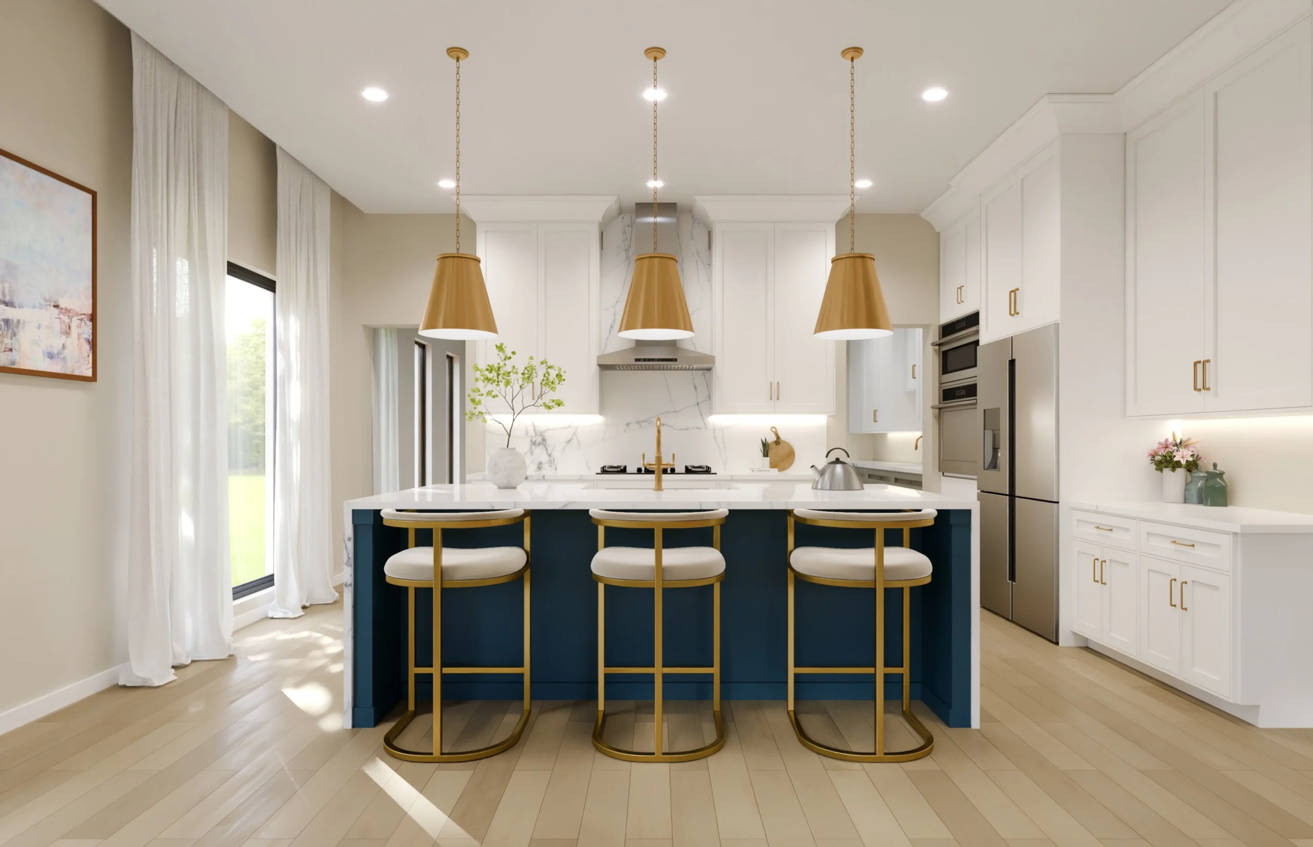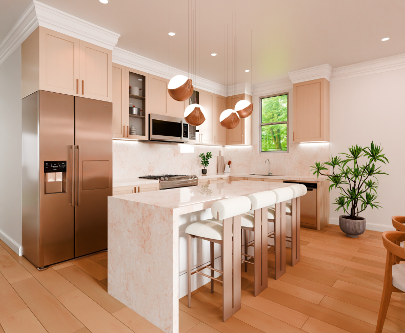 A thoughtfully designed kitchen featuring a generous island for seating, prep, and connection.